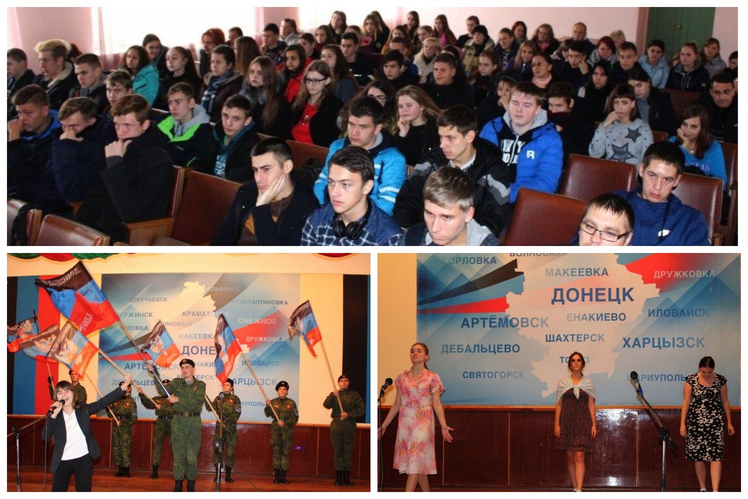 1 октября в городе Дебальцево прошёл урок патриотического воспитания подрастающего поколения и молодёжи Донецкой Народной Республики "Герои нашего времени". В мероприятии приняли участие воспитанники ОВПД "Молодая Гвардия Донбасса", ВПК "Спартанцы" города Горловка, ВПСК "Русский медведь" города Донецка, а также творческие коллективы нашего города.