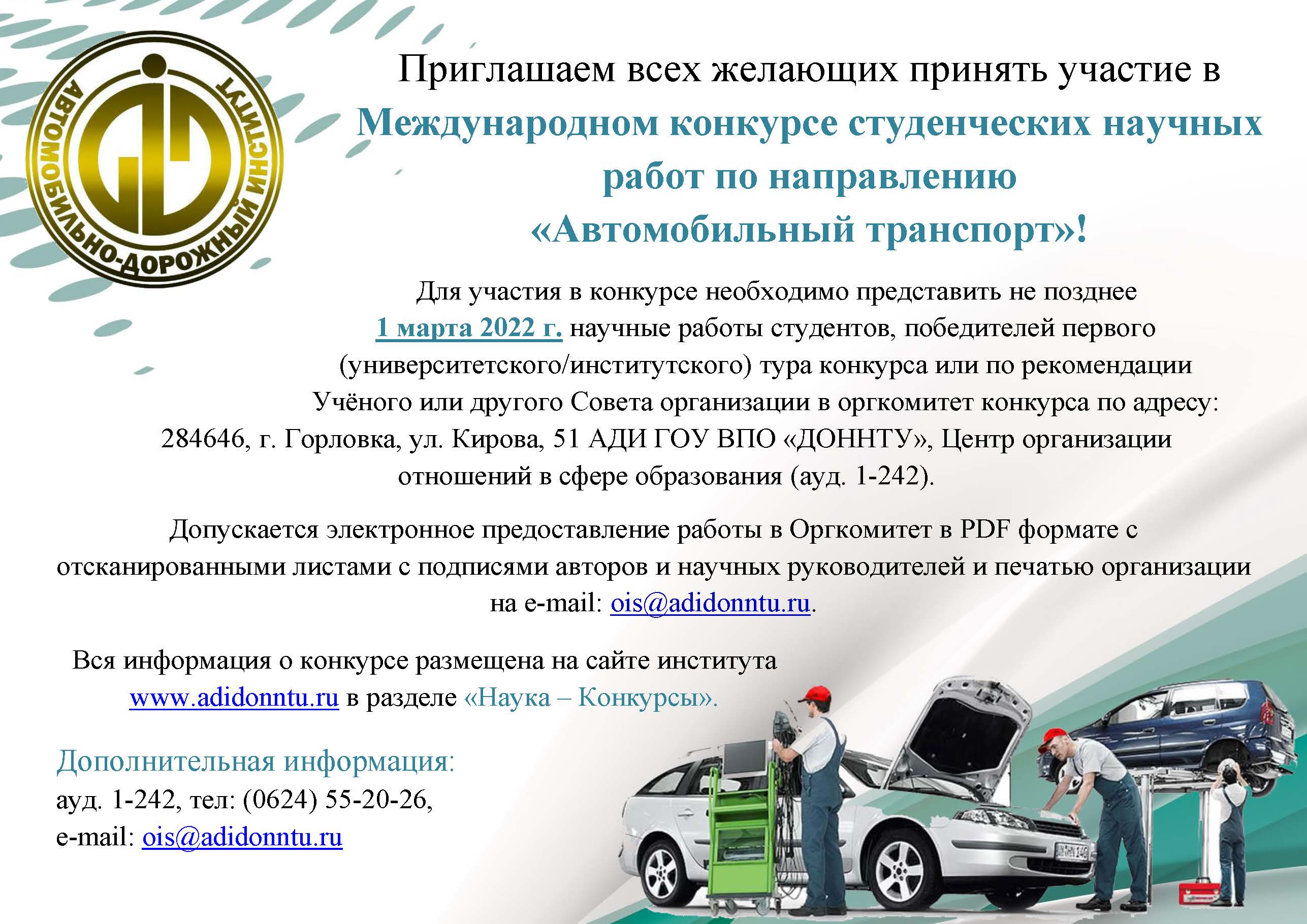Международный конкурс студенческих научных работ по направлению «Автомобильный транспорт»